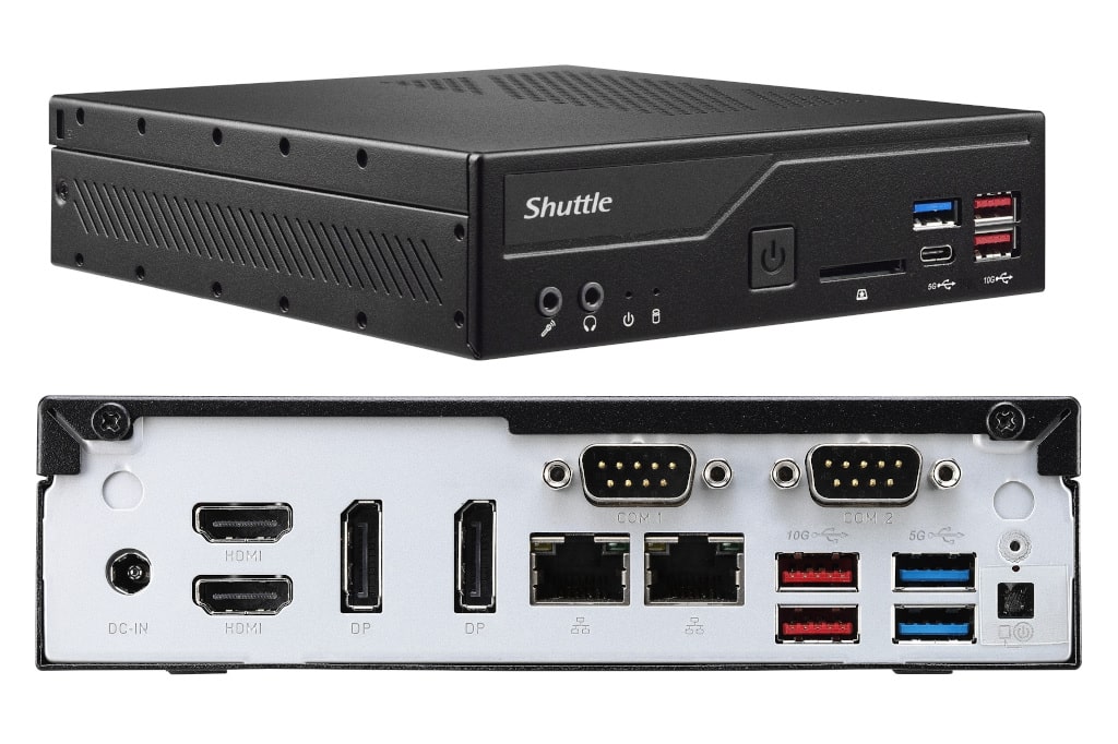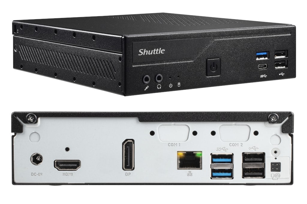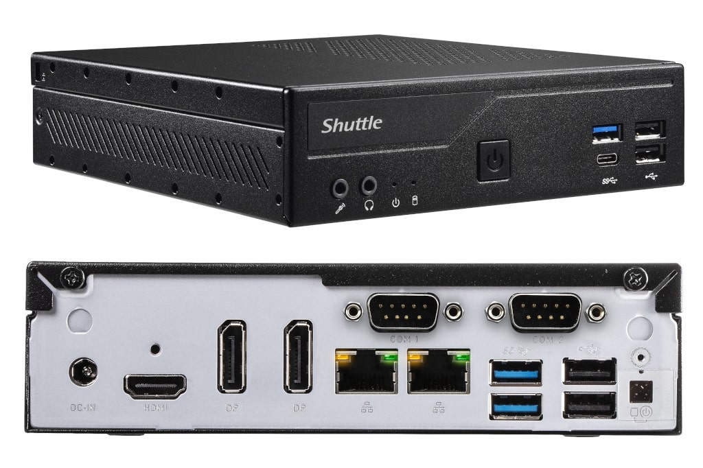 Den Auftakt macht das XPC Barebone DH610S, das Dual-UHD-Display-Unterstützung (1× HDMI 2.0b, 1× DisplayPort 1.4) mit sich bringt. Darauf folgt das Modell DH610 mit 1× 2,5Gbit- und 1× 1Gbit-Netzwerkanschluss. Zudem eignet es sich für bis zu drei UHD-Displays (1× HDMI 2.0b, 2× DisplayPort 1.4) und bietet zwei COM-Ports. An der Spitze steht das XPC Barebone DH670, ebenfalls mit zwei Netzwerkanschlüssen und COM-Ports, jedoch zusätzlich mit 2× HDMI 2.0b und 2× DisplayPort 1.4 und damit der Möglichkeit, bis zu vier UHD-Displays anschließen zu können.