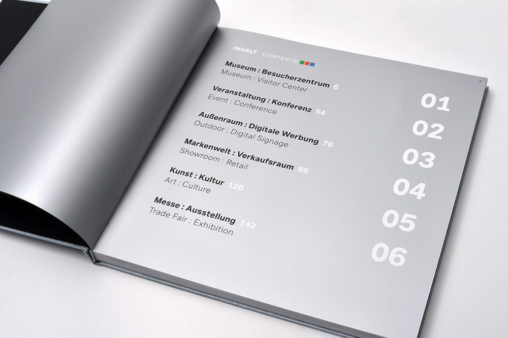 Auf 181 Seiten präsentiert das Unternehmen eindrucksvoll, was im Bereich der Medientechnik realisiert werden kann und wurde. Das hochwertige Material, die elegante Aufmachung, das Design und der schimmernde Umschlag versprechen Passion und Knowhow.