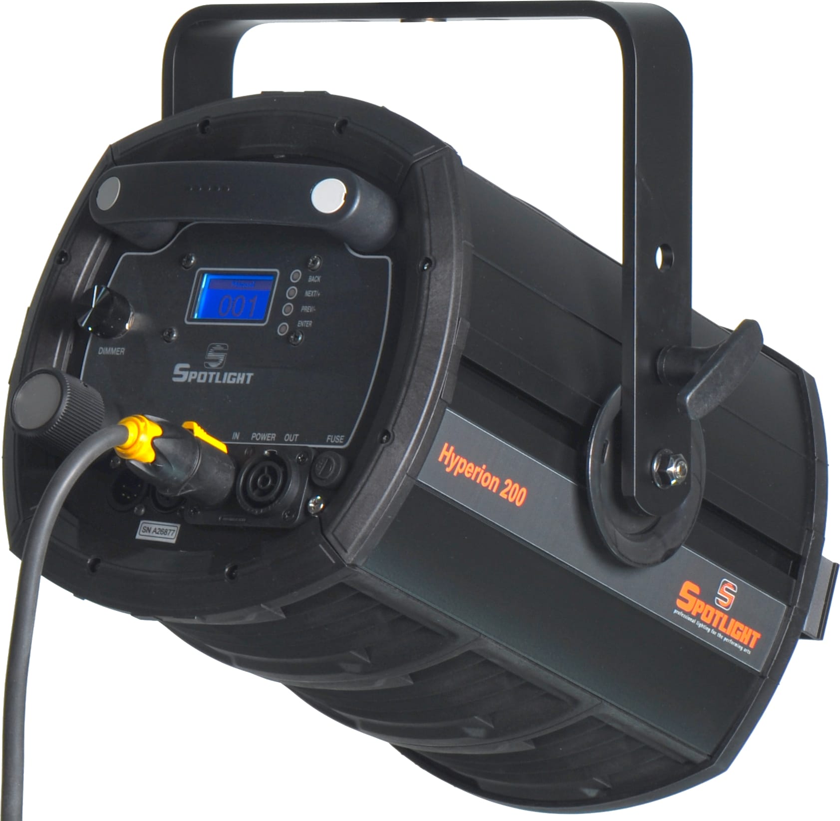 Die Hyperion Serie wurde von Spotlight für den Einsatz in Theatern, Film- und TV Studios sowie Ausstellungen entwickelt. Handling, Qualität und Haptik erfüllen die Ansprüche der Anwender aus diesen Einsatzbereichen. Die Leistungsklasse liegt im Bereich früherer 1kW und 2kW-Halogenscheinwerfer, aber mit nur 200W oder 300W Leistung durch den Einsatz moderner LED-Technik. Ein fast lautloser Betrieb der Scheinwerfer ist selbstverständlich.