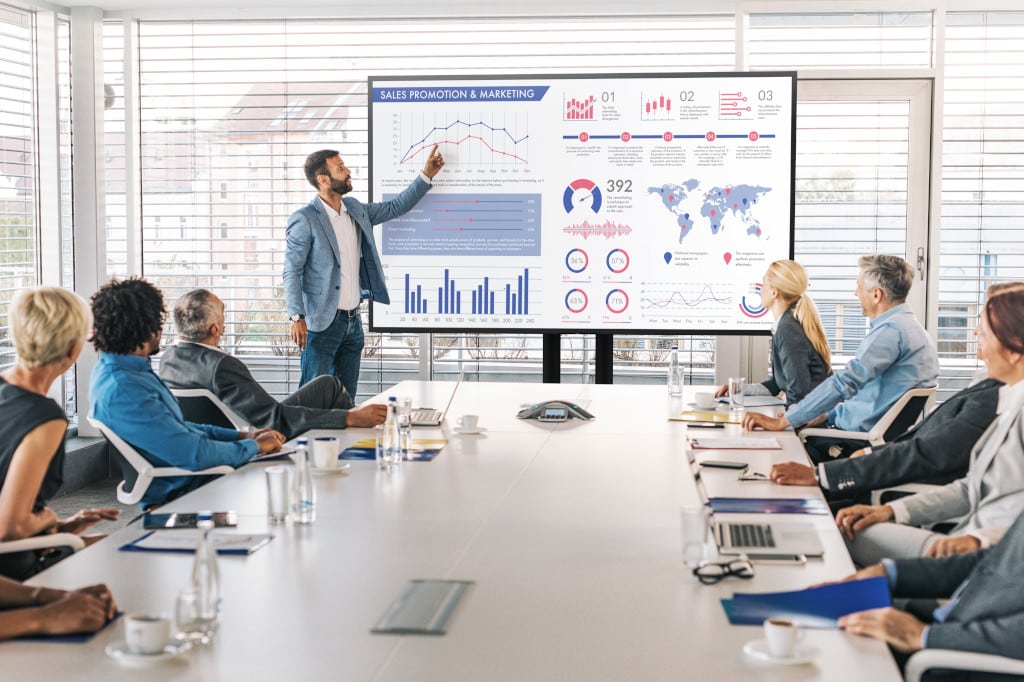 PTZ-Autotracking-Kameras von Sony folgen den Bewegungen der Referent:innen und halten sie während der Präsentation im Fokus.