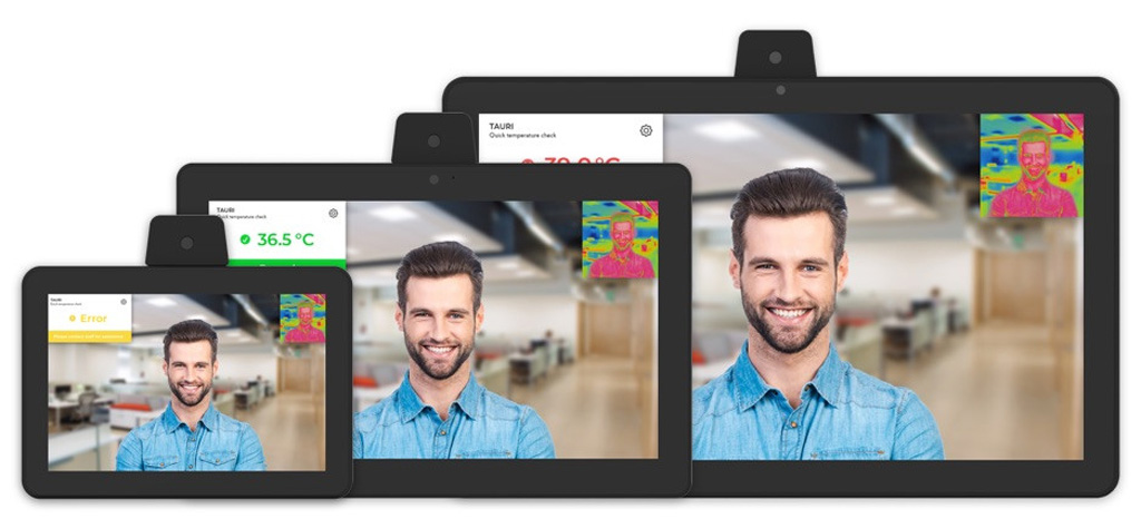 Die Steuerung von Tauri funktioniert per App. Es werden keine Personendaten gespeichert. Tauri basiert auf Android. Das All-in-One Temperatur-Check-Tablet ist in drei Größen erhältlich: 10,1, 15,6 und 21,5 Zoll.