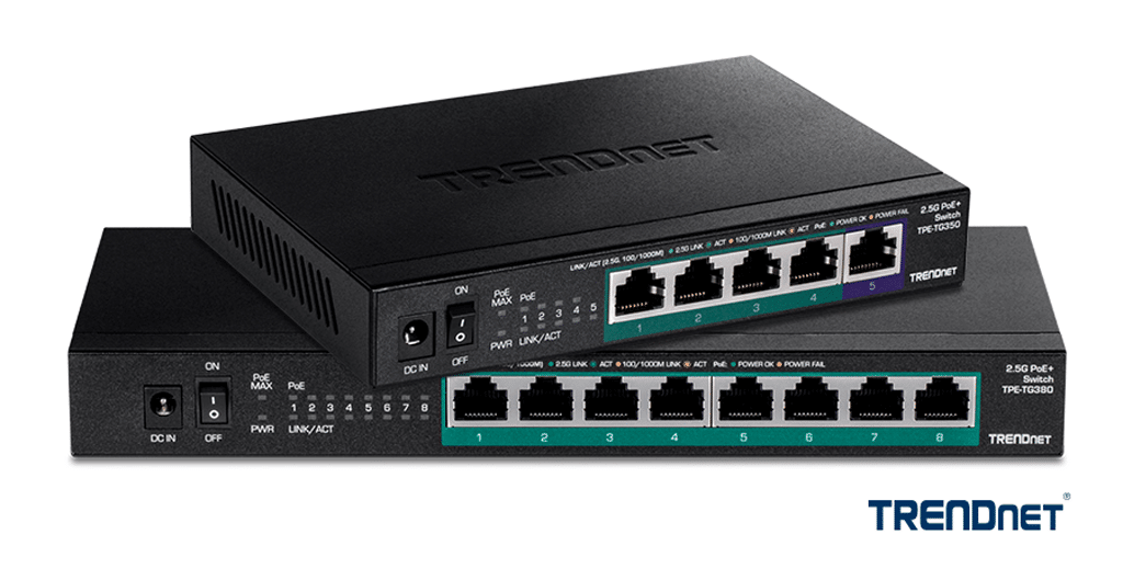 Mit den unmanaged 2.5G PoE+Switches TPE-TG350 und TPE-TG380 von Trendnet soll sich die Bandbreite des Netzes auf 2.5Gbps erweitern und digitale Engpässe beseitigen oder reduzieren lassen. Die 2.5G PoE+ Switche TPE-TG350 und TPE-TG380 sind mit jeweils fünf bzw. acht 2.5GBASE-T RJ-45-Ports ausgestattet, die höhere Gigabit-Geschwindigkeiten von bis zu 2,5Gbps über bestehende Cat5e- oder bessere Verkabelung ermöglichen sollen.