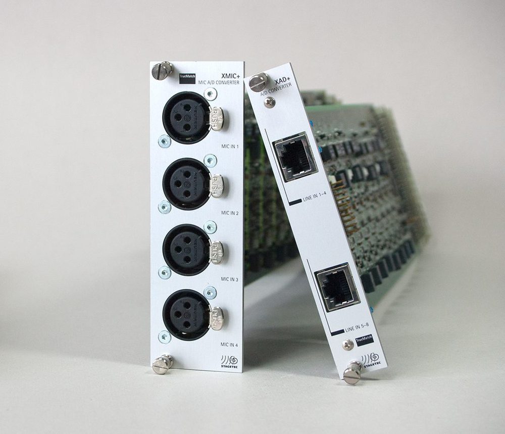 Den True Match-Wandler gibt es in zwei Varianten. Als analoges Frontend im Nexus-Audioroutingsystem sind die A/D-Wandler (XAD+, XAD) und die Mikrofonkarte (XMIC+, XMAD) von Stage Tec mit den True Match-Wandlern bestückt.