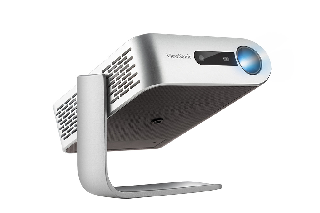 Neuer LED-Projektor mit WLAN- und Bluetooth-Funktionen: Der M1 + von ViewSonic mit integriertem Smart Stand für einfache Ausrichtung (Bild: ViewSonic)