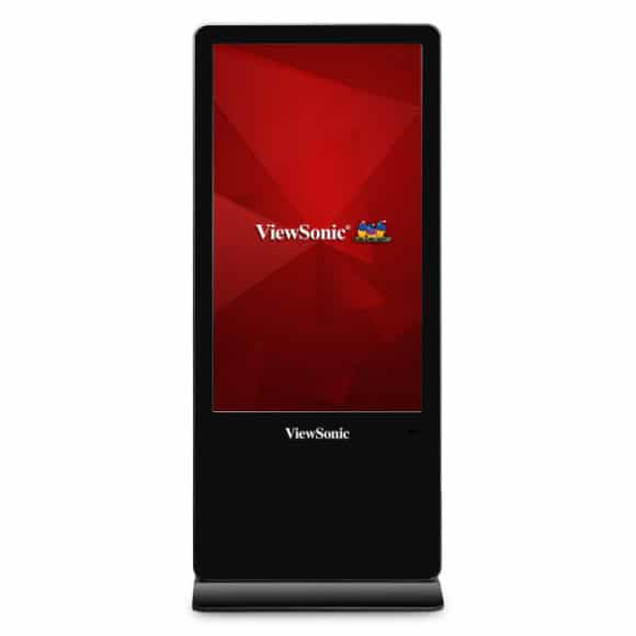 Das interaktive 10-Punkt-All-in-One-ePoster von ViewSonic verfügt über einen Multitouch-Bildschirm mit einer Displaydiagonale von 55 Zoll, der in einer schlanken, eleganten Stele verbaut ist. Das Display bietet eine 4K-UHD Auflösung (3840 x 2160), breite Blickwinkel von H/V jeweils 178 Grad und setzt auf Infrarot-Technik.