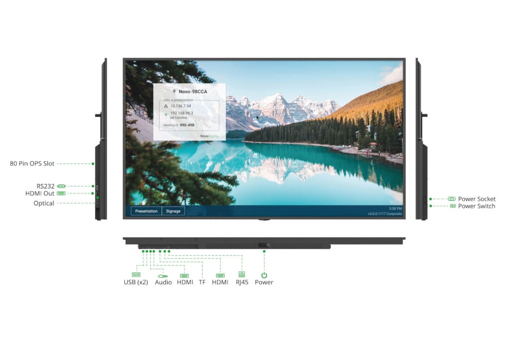 Die NovoDisplay DK-Serie ist Teil des Vivitek Novo Ecosystems. Das integrierte NovoConnect ermöglicht eine kabellose Präsentation und Zusammenarbeit im Klassenzimmer oder im Büro. So können die Displays in Besprechungsräumen auch in den Präsentationsmodus wechseln.
