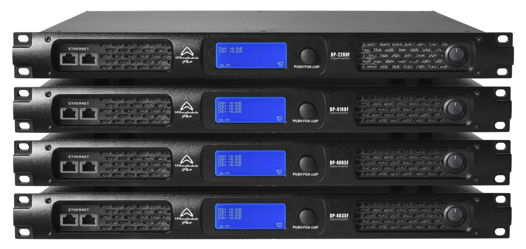 Der DSP Controller ist speziell entwickelt für die Steuerung der DSP-Endstufen aus den Serien DP-N und DP-F von Wharfedale Pro. Beide Serien liefern große Leistungsreserven in Class-D-Ausführung auf nur einer Höheneinheit. Vier Verstärkerkanäle können mit FIR-Filtern mit 512 Taps korrigiert werden. Dabei bietet die DP-F Serie die Steuerung übers Netzwerk, während die DP-N Serie sich in Dante-Umgebungen integriert. Modelle beider Serien sind außerdem 70V/100V-kompatibel. So liefern die Endstufen aus den DP-N und DP-F Reihen bis zu 9.520 Watt an 4 Ohm (gebrückt) und sind per DSP Controller anpassbar.