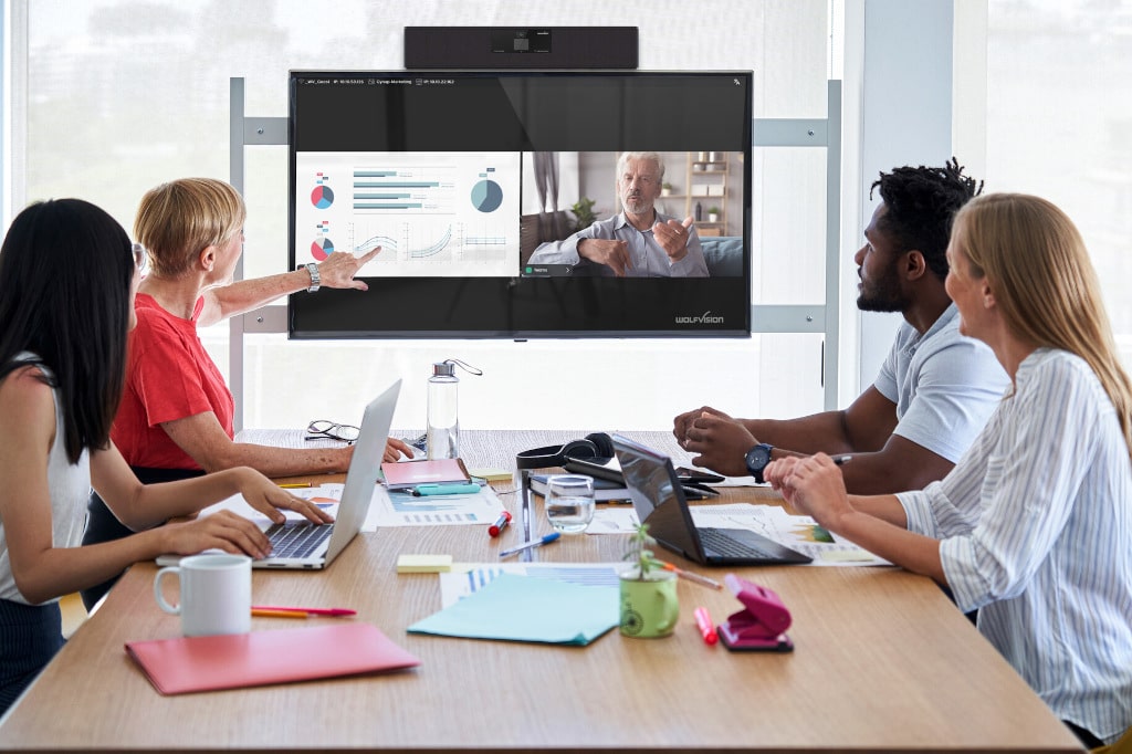 Hybrides Meeting in Konferenzraum(Bild: WolfVision)