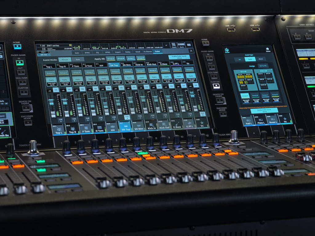 Natürlich steht Yamahas bekannte Zuverlässigkeit im Mittelpunkt der DM7-Serie, und um diese noch weiter zu verbessern, verfügt sie über eine redundante Stromversorgung. Darüber hinaus gibt es die neue Assist-Funktion, die dem Anwender Vorschläge für die Einstellung des Vorverstärkers, die Namensgebung und die Faderbalance macht und so die Vorbereitungszeit verkürzt.