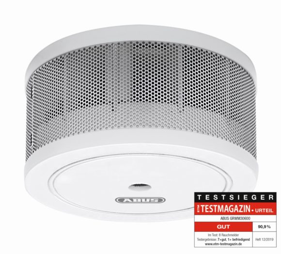 Über 500 Menschen in Deutschland sterben jährlich an den Folgen eines Feuers, 95% davon aufgrund des Einatmens giftigen Rauchs. Da auch der Geruchssinn nachts schläft, wachen die meisten Personen erst dann auf, wenn durch dichten Rauch die Orientierung bereits erschwert ist. Oftmals können sich Betroffene nun nicht mehr rechtzeitig in Sicherheit bringen. Rauchmelder sind folglich wahre Lebensretter. Das ETM Testmagazin hat in der Ausgabe 12/2019 acht Rauchmelder auf Herz und Nieren getestet und das Modell ABUS GRWM30600 mit der Note „gut“ zum Testsieger gekürt.
