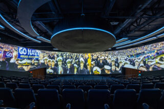 Der Sportverband der Marineakademie in Annapolis, Maryland (Naval Academy Athletic Association, NAAA) eröffnete vor Kurzem das Ron Terwilliger ’63 Center für studentische Athleten. Das Center beherbergt das neue Akerson Theater, einen immersiven Kinosaal mit einer 180-Grad-Leinwand, in dem eine Reihe von Christie Produkten eingesetzt werden, unter anderem Projektoren aus der HS-Serie, Spyder X20, Mystique und Pandoras Box.