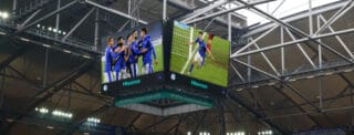 Mit 76,32 m² Bildfläche auf jeder der vier Seiten soll der Würfel der größte seiner Art in ganz Europa sein. Seit 2014 ist Hisense Premium-Partner des Vereins und hat die Veltins-Arena seitdem unter anderem bereits mit zahlreichen UHD-TVs und weiterer Technik ausgestattet.