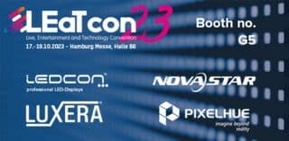Zusammen mit seinem Partner NovaStar & Pixelhue zeiget Ledcon seine neuesten Entwicklungen. Unter anderem sollen u. a. live zu bestaunensein: die Novastar Coex-Serie, Pixelhue Q8 presentation switcher, P20 Seamless Switcher, die brandneue Pixelhue U5 Live Console. Ferner präsentiert Ledcon die Rental Solution Luxera RS Serie sowie die gerade gelaunchte Outdoor-Lösung Qpix II für besondere Anforderungen. Die…