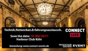 Am 10. Mai veranstalten EVENT PARTNER und PRODUCTION PARTNER im Harbour Club, Köln, erstmalig eine neuartige Event-Reihe, Connect 2017. Hier können Sie mit Kollegen und Spezialisten aus der Veranstaltungsbranche networken, mitdiskutieren, mit Herstellern ins Gespräch kommen und ausgewählte Produkte direkt ausprobieren. Bei mehreren lockeren Gesprächskreisen mit Fachleuten und Prominenten der Veranstaltungsbranche, die über den Tag verteilt…
