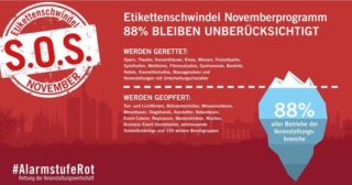 In Kooperation mit dem Aktionsbündnis #AlarmstufeRot fordern die Verbände BDKV, EVVC, FAMAB, isdv, LiveKomm und VPLT weitreichende Anpassungen der im Konjunkturprogramm des Bundesministeriums für Finanzen geregelten Hilfen. Das beachtliche Hilfsprogramm sei in keiner Weise ausreichend, um dem von den Corona-Infektionsschutzmaßnahmen besonders hart betroffenen Wirtschaftszweig der Veranstalter, Spielstättenbetreiber und Veranstaltungsdienstleister wieder auf die Beine zu helfen, heißt es in einer Meldung.